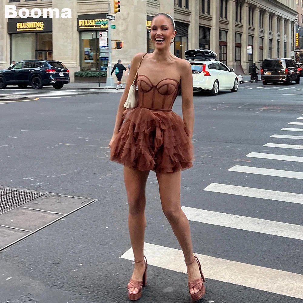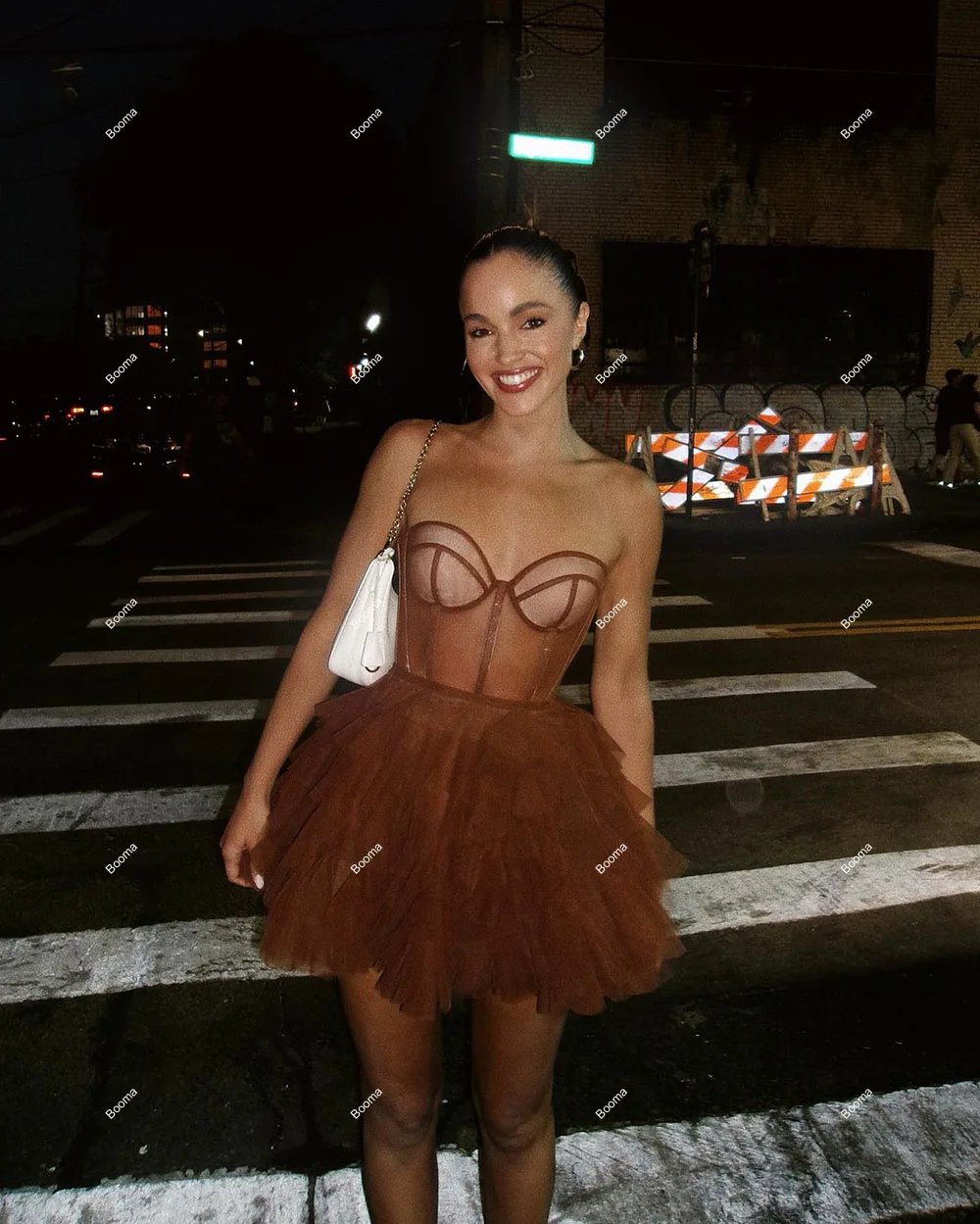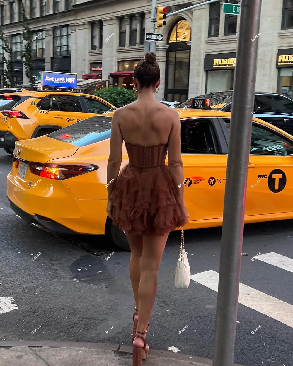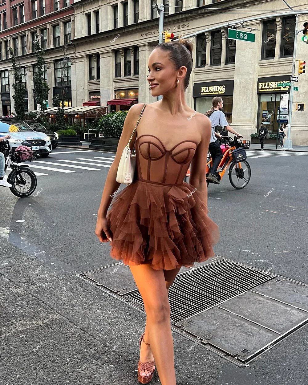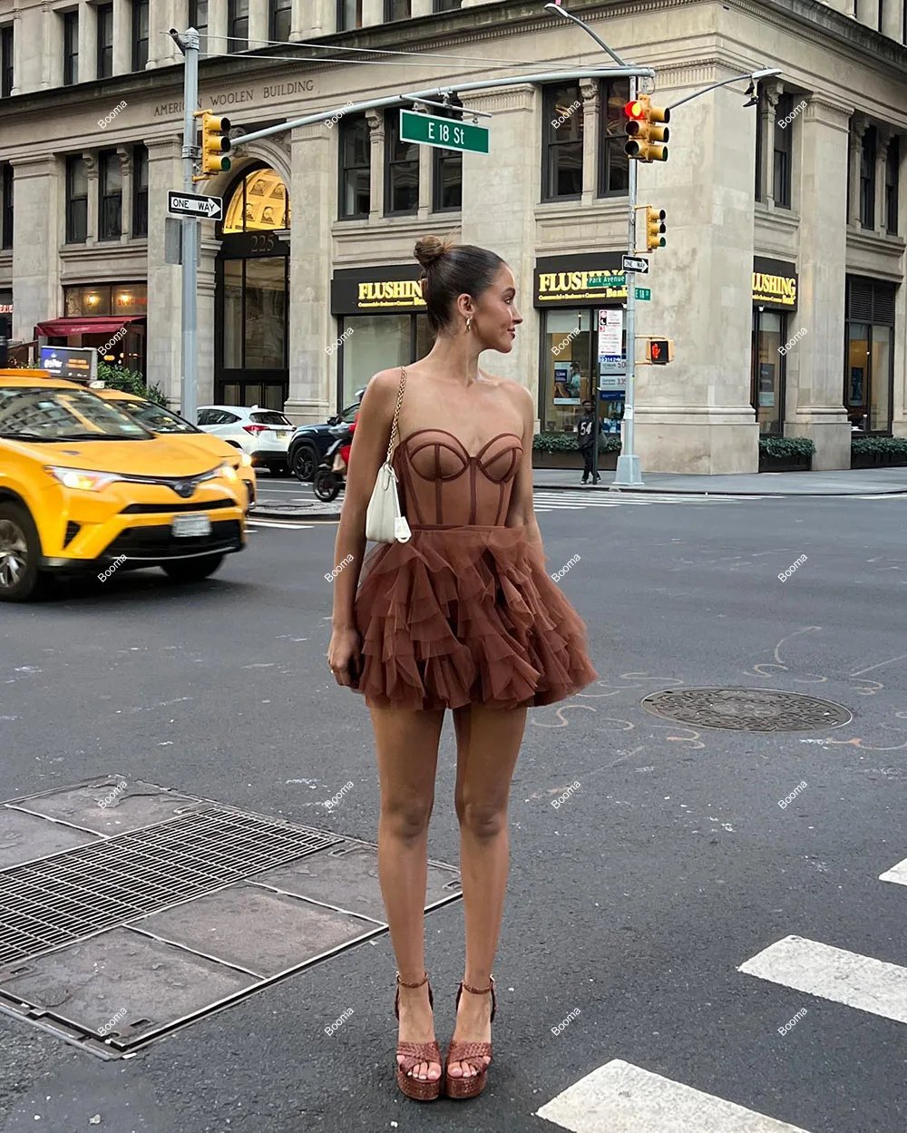 Booma Brown A-Line Sweetheart Sleeveless Mini Prom Cocktail Dress