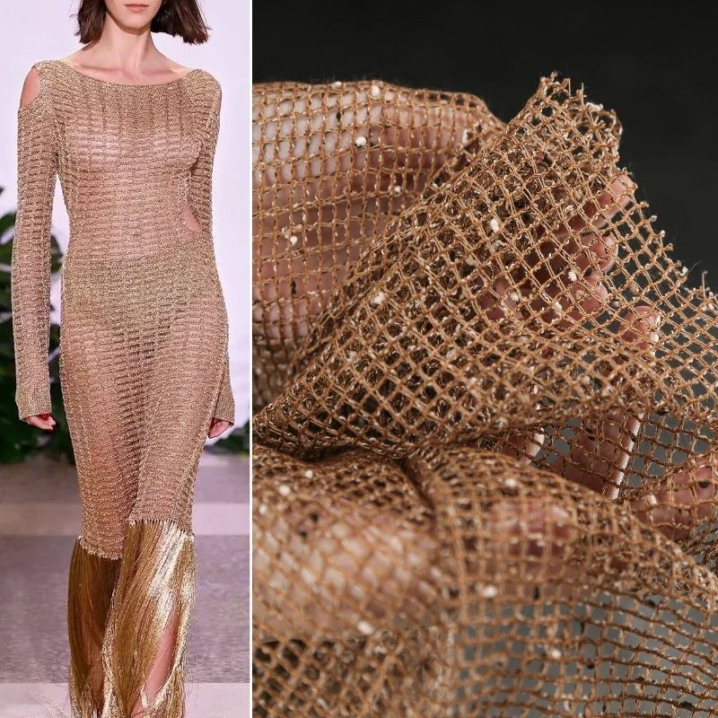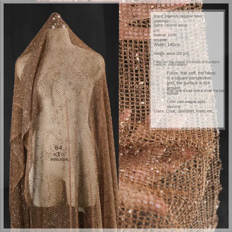 Be the first to review “Brown Prom Dress Caramel Mesh See-Through Yarn Elegant Designer Fabric”