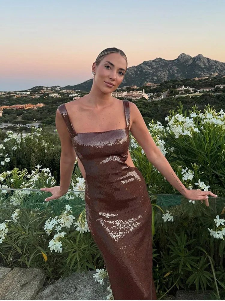 This brown prom dress is ideal for anyone looking for a versatile, fashionable piece that combines comfort with high-end appeal. The backless design and slim fit enhance your natural curves, while the sequined decoration adds a touch of luxury. Perfect for a variety of occasions, from a night out at the club to a formal prom event, this dress will leave a lasting impression. Whether you’re searching for brown dresses for prom or simply want a dress that exudes elegance and style, this is the ideal choice.