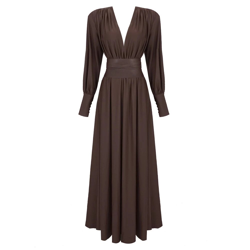 A brown prom dress is a timeless and elegant choice for any special occasion. This dress combines sophistication with a modern touch, ensuring you stand out at any party or formal gathering. The plunging V-neck design enhances your neckline, while the high waist and stylish belt create a flattering silhouette. Whether you’re attending a prom, an evening gala, or a special dinner, this gown exudes confidence and grace.
