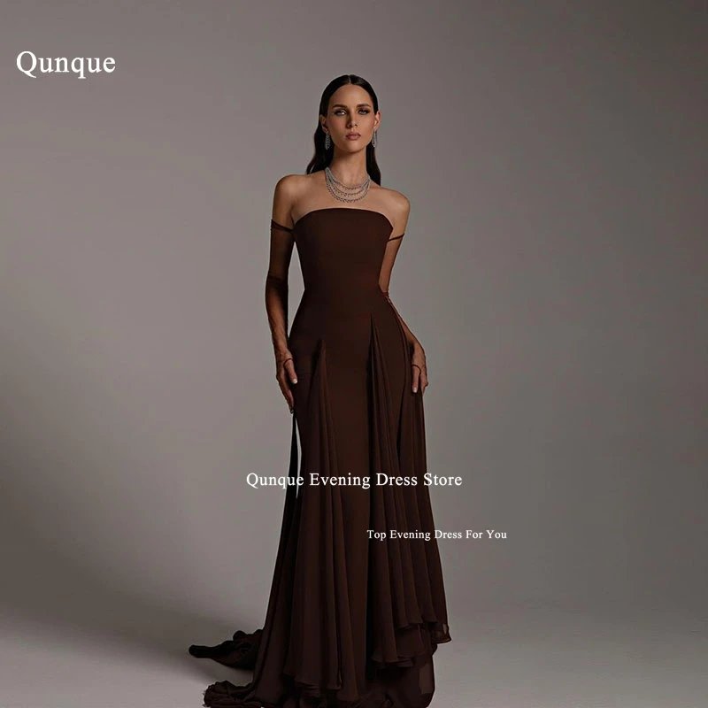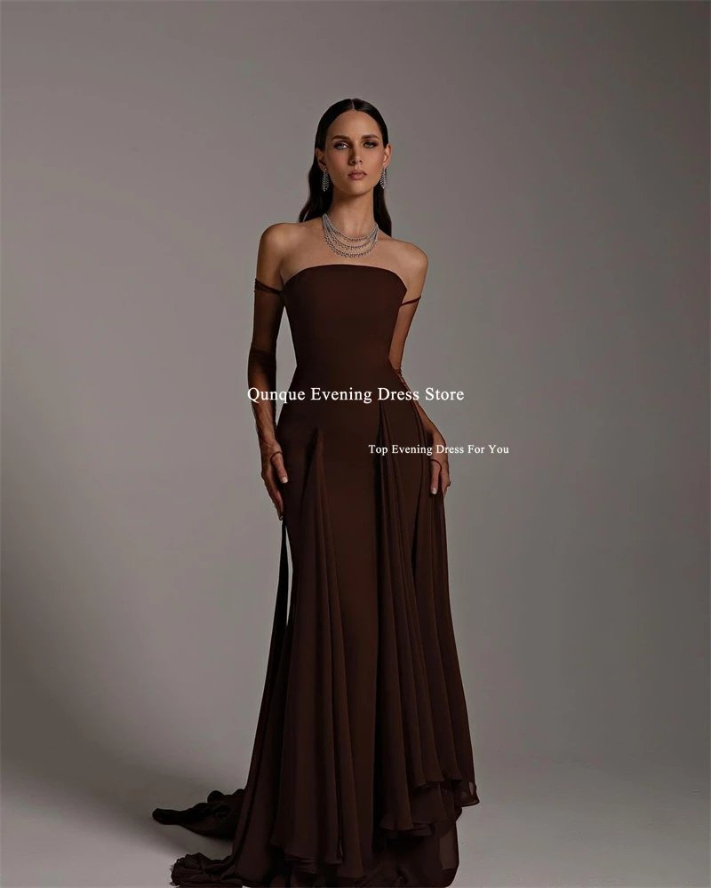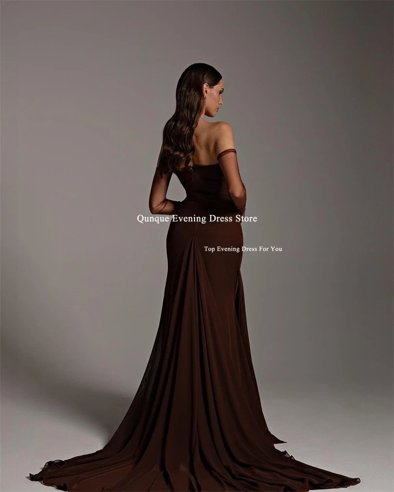 If you are searching for the perfect brown prom dress that combines elegance, timeless beauty, and a touch of vintage glamour, the Qunque Chiffon Off-Shoulder Mermaid Evening Prom Dress is a stunning choice. Designed to make a lasting impression, this dress combines high-quality materials with a flattering silhouette to ensure you look and feel your best at any formal occasion, especially your prom night.