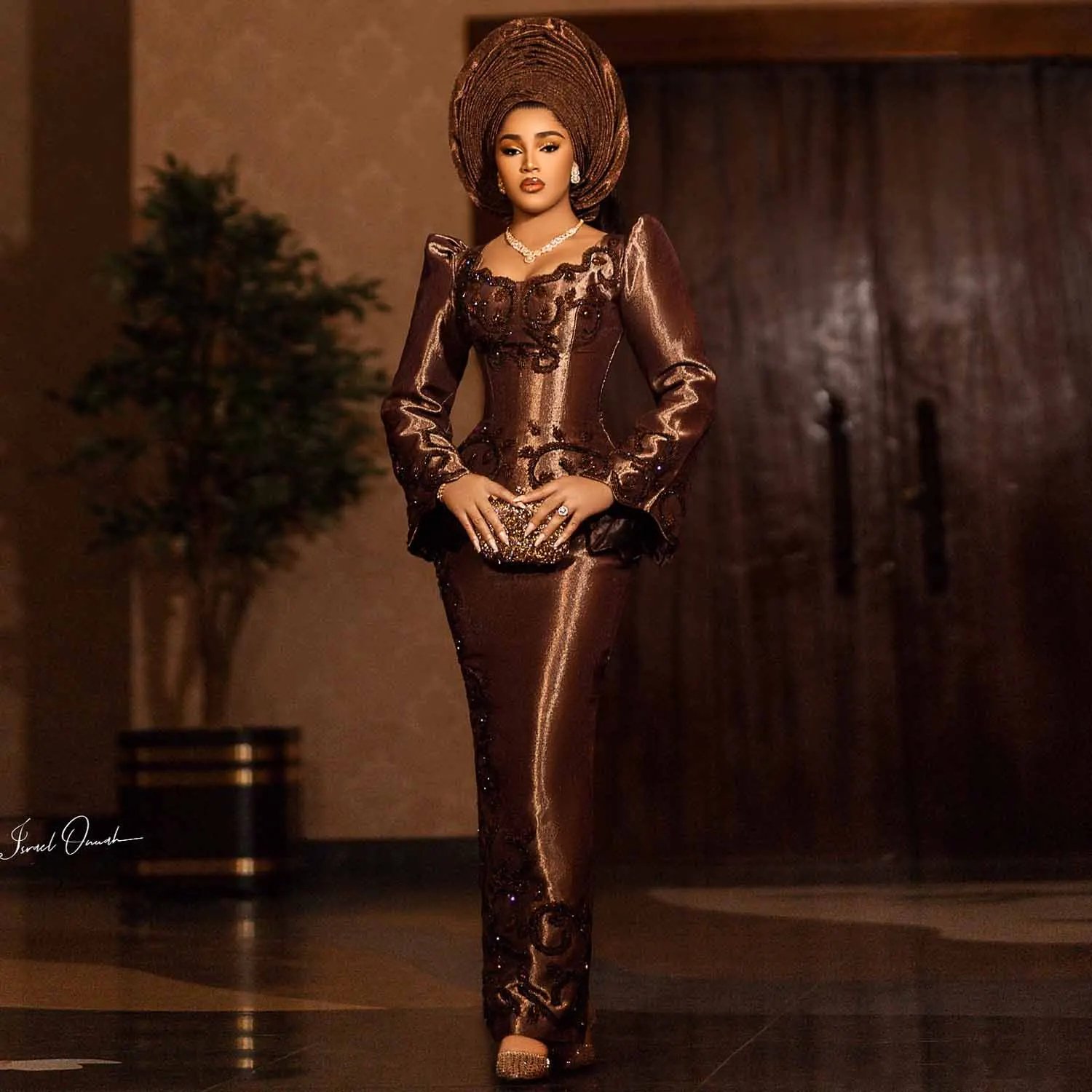 ✨ Choose the Stunning Brown Nigerian Traditional Bridal Wedding Party Asoebi Gown Dress to embrace your heritage with sophistication and enter your event with unmatched confidence. If you’re looking for a brown prom dress that balances cultural pride and couture beauty; this is the one.
