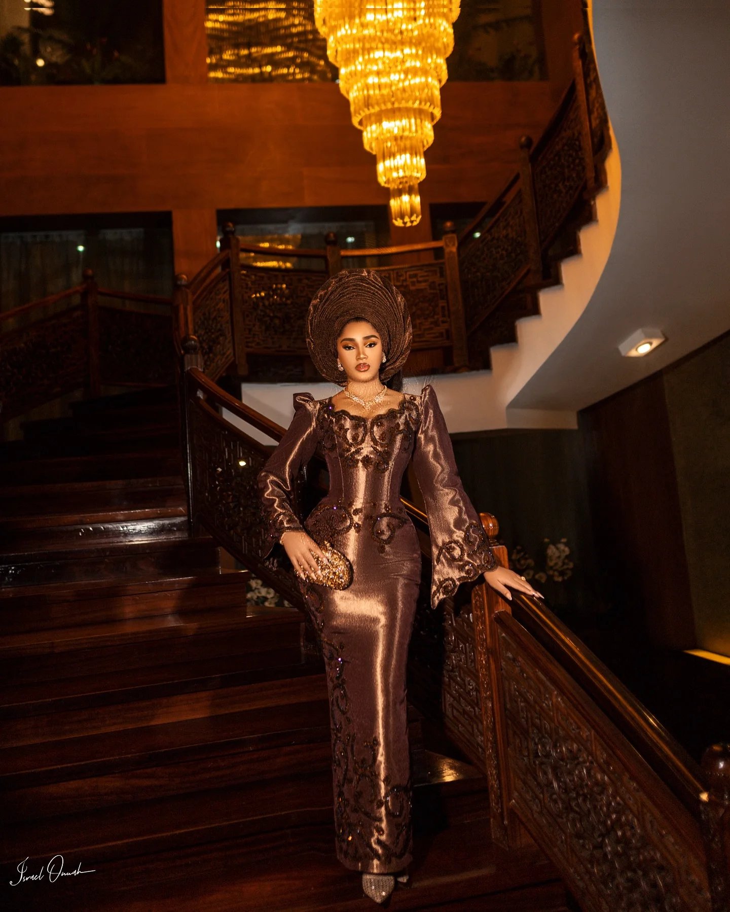 ✔ Cultural Sophistication: Inspired by the Asoebi tradition, this gown speaks volumes without saying a word, making it perfect for weddings, cultural events, or any formal gathering.